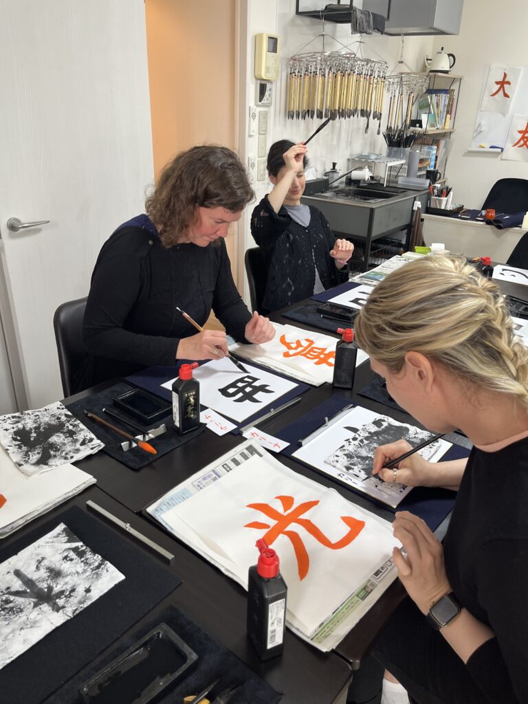 墨や毛の原料、種類の違いなど深い部分も質問してくださったり、書き順や日本語での発音と意味も確認してくれて真剣に練習される姿が美しかったです。